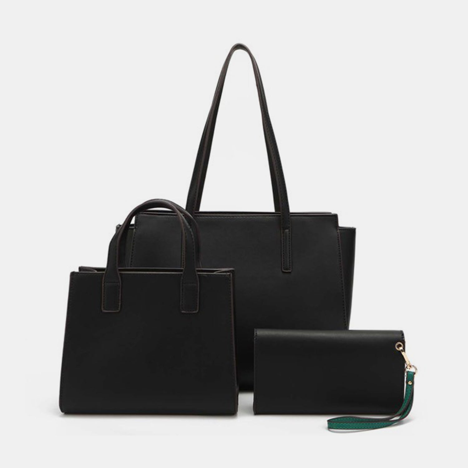 This 3-piece color block handbag set is a versatile and stylish addition to your accessory collection. The set includes a shoulder bag, mini messenger bag, and wallet, providing you with options for different occasions. The color block design adds a modern and trendy touch to the set, making it a fashionable choice for any outfit. Made from high-quality materials, these handbags are durable and functional for everyday use. Whether you're running errands, going to work, or heading out for a night on the town, this set has you covered. Elevate your style and stay organized with this chic and coordinated handbag set.
