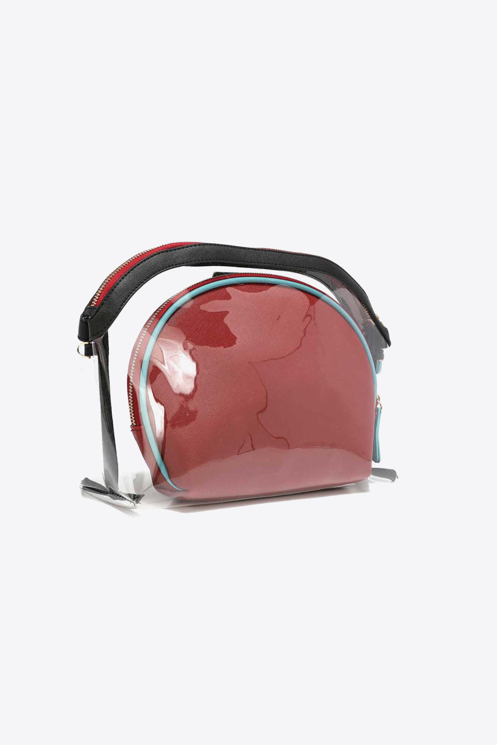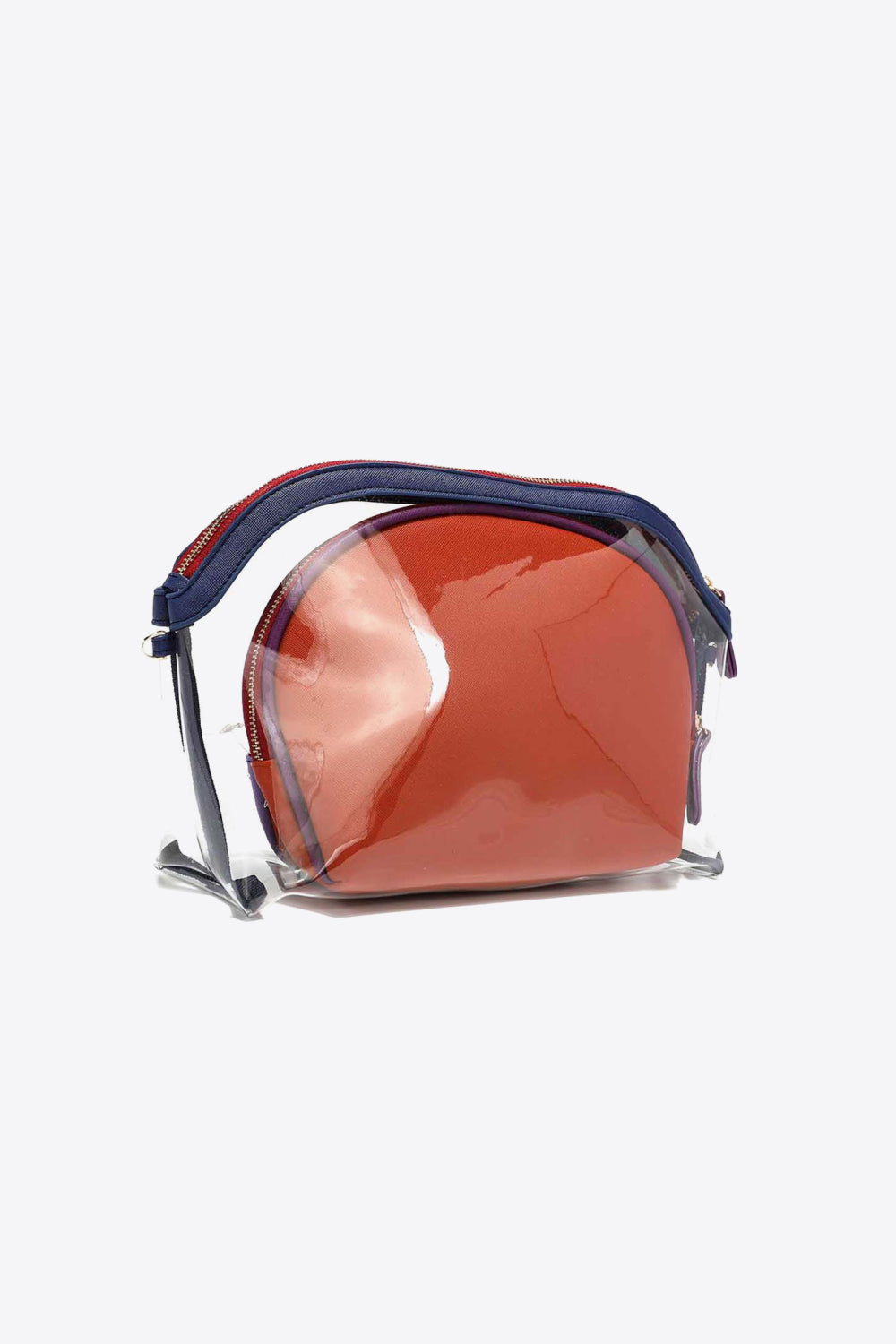 The ultimate accessory for fashion-forward individuals. With the ability to be worn as a crossbody, layered together, or individually, this set offers unparalleled flexibility and style. The large clear puch,the first gem in this collection, features a zip top closure that ensures your belongings stay safe and secure. With dimensions of 11"L x 4"W x 8"H, it provides ample space for all your essentials while maintaining a sleek and transparent design that adds a modern touch to any outfit. Next up is the solid pouch, a sophisticated companion that combines functionality with elegance. Its zip top closure and interior back zip pocket provide convenient storage options, keeping your belongings organized and easily accessible. The inclusion of an optional crossbody strap allows you to carry it in multiple ways, adapting to your personal style. With dimensions of 10.5"L x 2.25"W x 7"H, it strikes the perfect balance between compactness and spaciousness. Completing the set is the charming printed pouch, showcasing a delightful pattern that adds a pop of personality to your ensemble. Like its counterparts, it boasts a zip top closure and an interior back zip pocket, offering both security and organization. With dimensions of 8"L x 2"W x 5.5"H, it is compact enough to effortlessly fit into any handbag or be carried on its own.